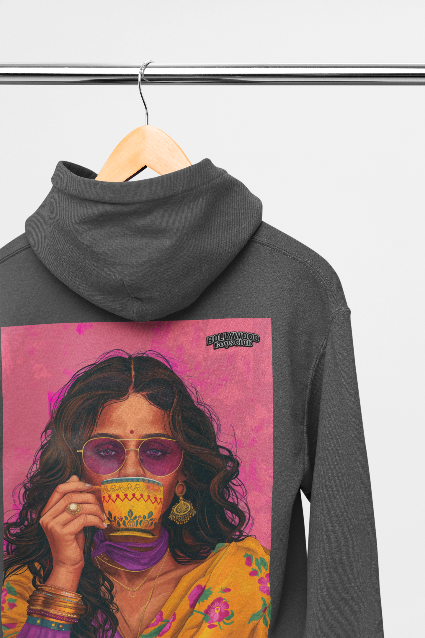 SIPPING – A moment of peace in the middle of the chaos. This design captures the everyday magic of chai — not just a drink, but a ritual, a pause, a connection. An Indian lady, eyes soft and mind somewhere far away, sipping her cup like the world can wait. Printed on soft, breathable fabric, this tee brings the soul of the street corner chai stall straight into your wardrobe.