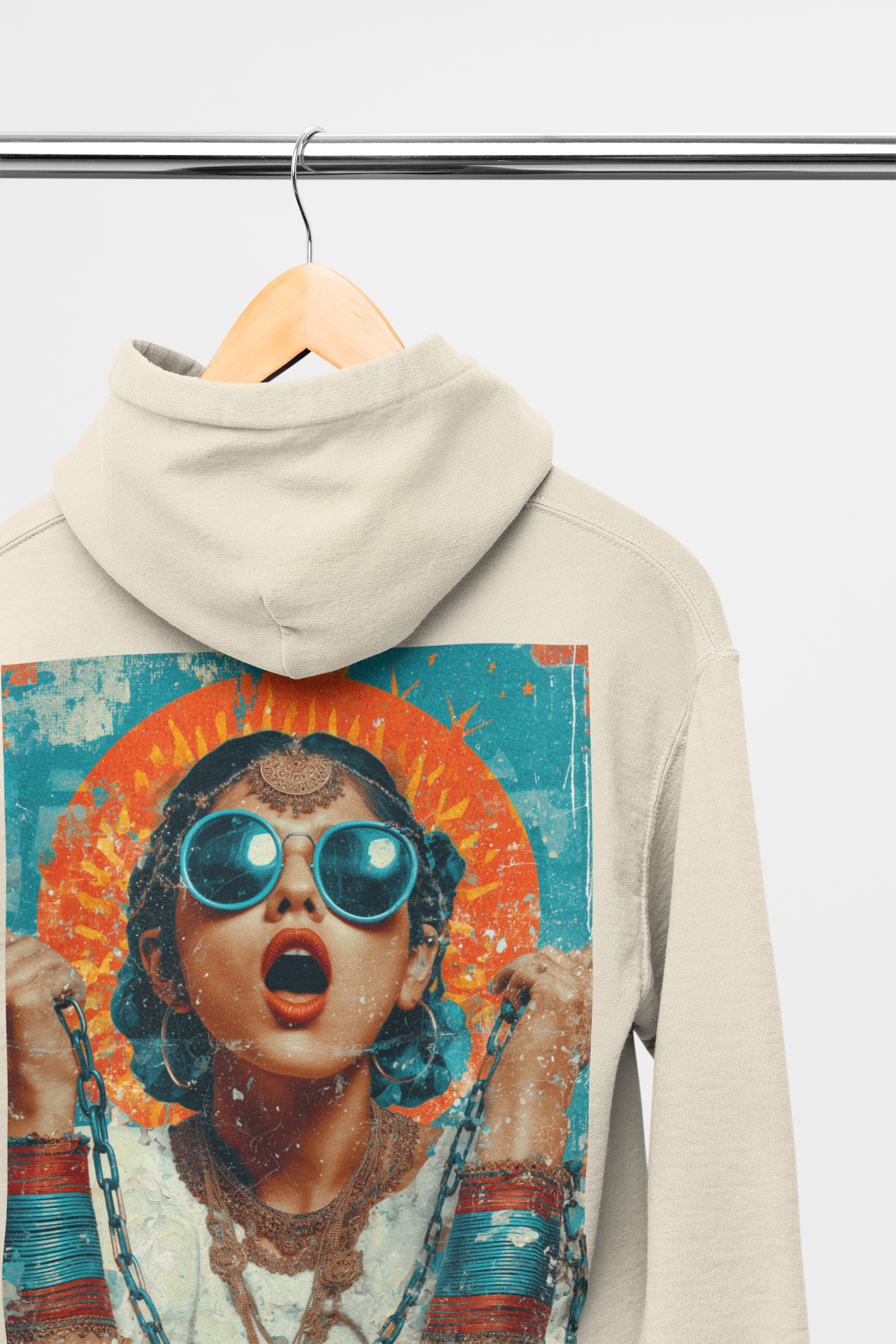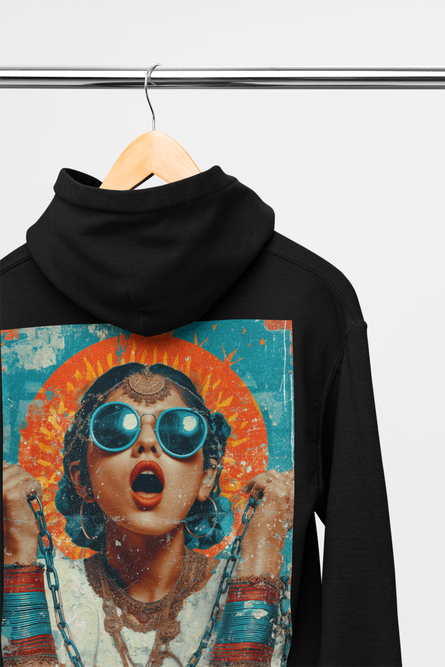 This hoodie is about tension — the push and pull between control and freedom. IN CHAINS captures the moment before the break, where pressure builds and power wakes up. Bold, confrontational, and charged with desi fire, this design turns restraint into resistance.