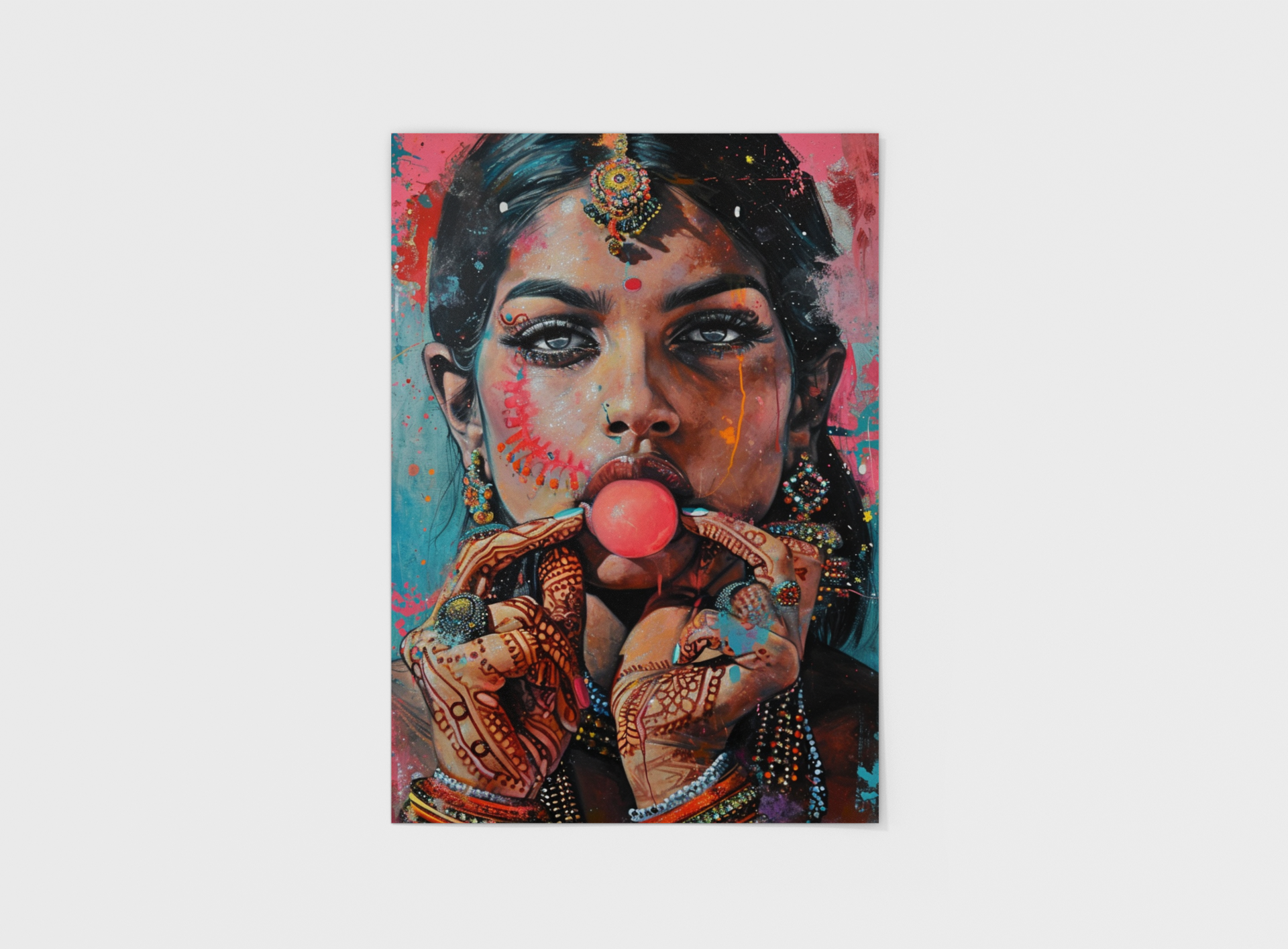Bubbles — light-hearted, unbothered, and quietly iconic. This bold artwork captures a modern desi girl in her own world, blowing bubbles like she’s got nothing to prove and nowhere to rush. Effortless, confident, and full of personality, she turns a simple moment into a whole vibe.